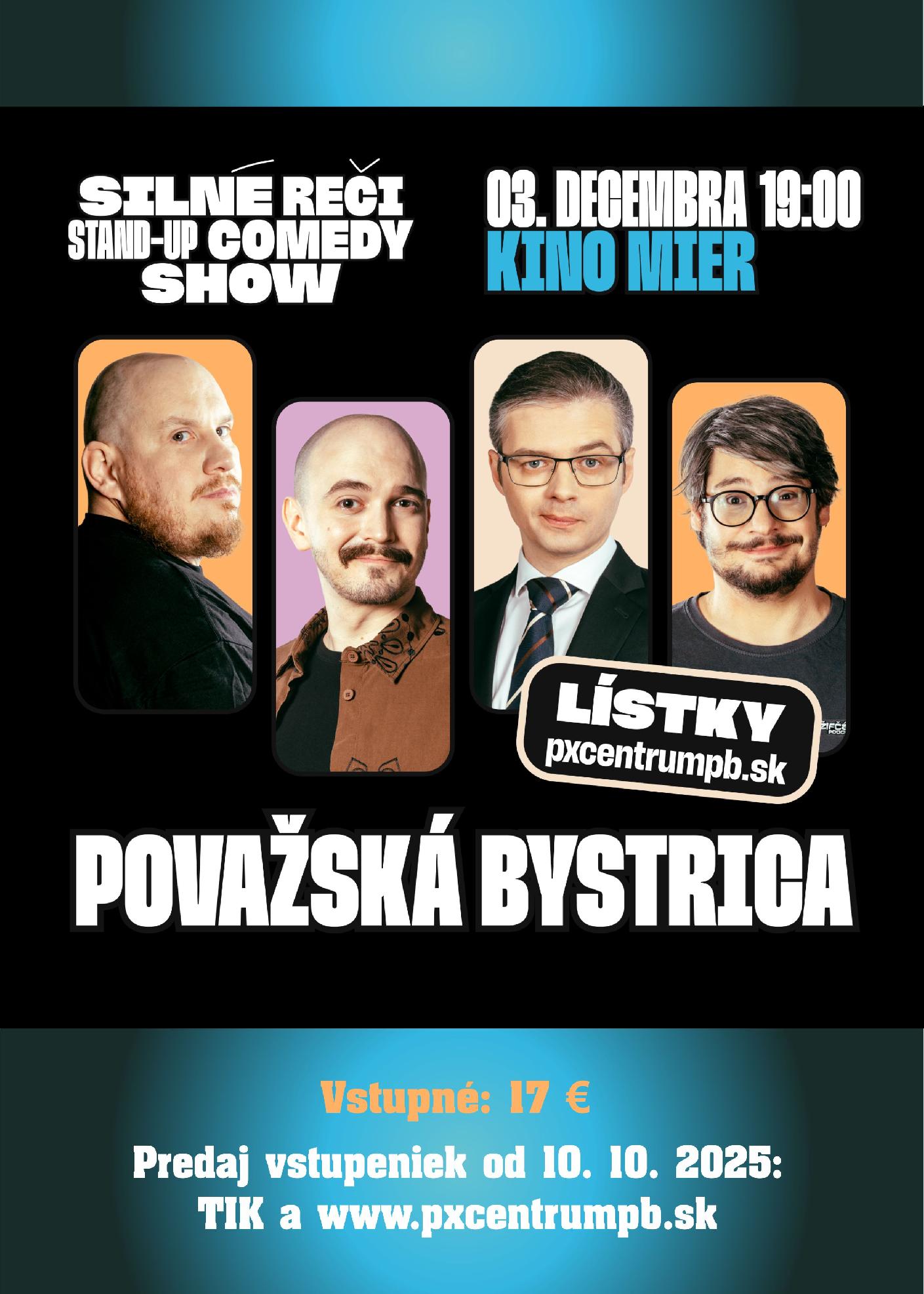 Už 3.12. v Považskej Bystrici vás budú baviť: Matej Adámy, Gabo Žifčák, Jakub Lužina, Ivan Kostra.